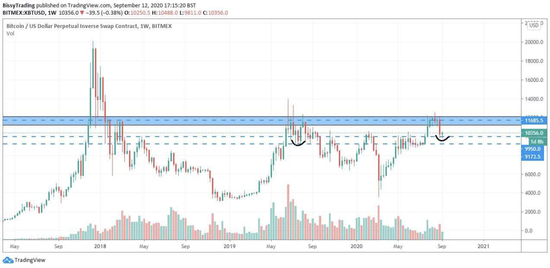 Milo:#宏观趋势分析BTC周K# 如图,12000的阻力区域,2018年试着底部反弹,失败,2019年3次冲高回落,再次失败,2020年尝试了3次,还是失败。我们需要非常警惕这个区域,目前来看,我们有可能会再次尝试突破该区域。目前反弹,虽然我们做了几笔成功的交易,但不代表我们可以放松警惕,BTC10700是个坎,11100又是个坎,12000还是个坎,不要盲目乐观。