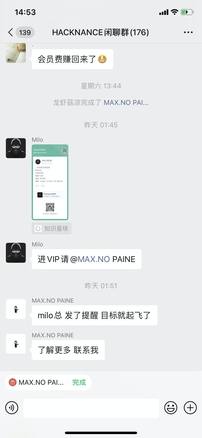 加入Hacknance骇客金融机构席位客户辅导计划的朋友,可以进入我们的知识星球VIP群,以后更详细的行情分析,以及其他热门币种的交易策略会第一时间发布在这里。