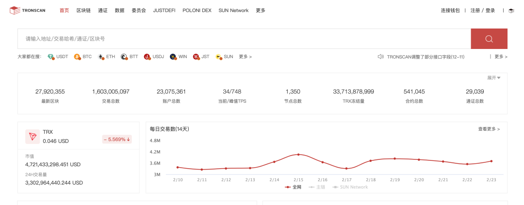 官网: https://tronscan.io/