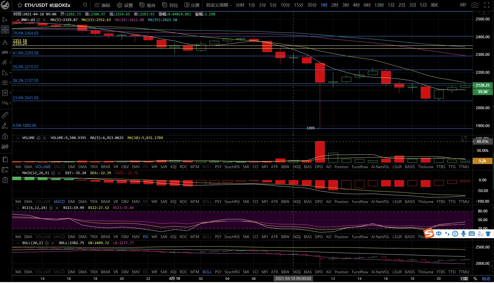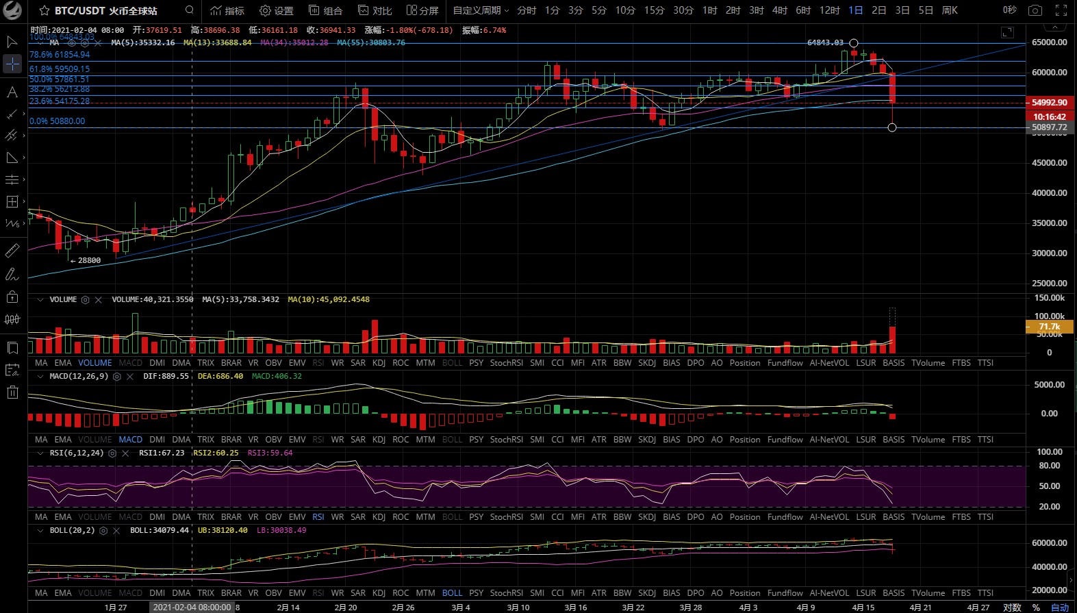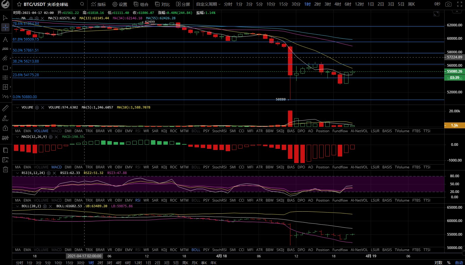 4月18日行情分析:比特币偏大幅下跌,当下正在通过震荡回调来修复指标