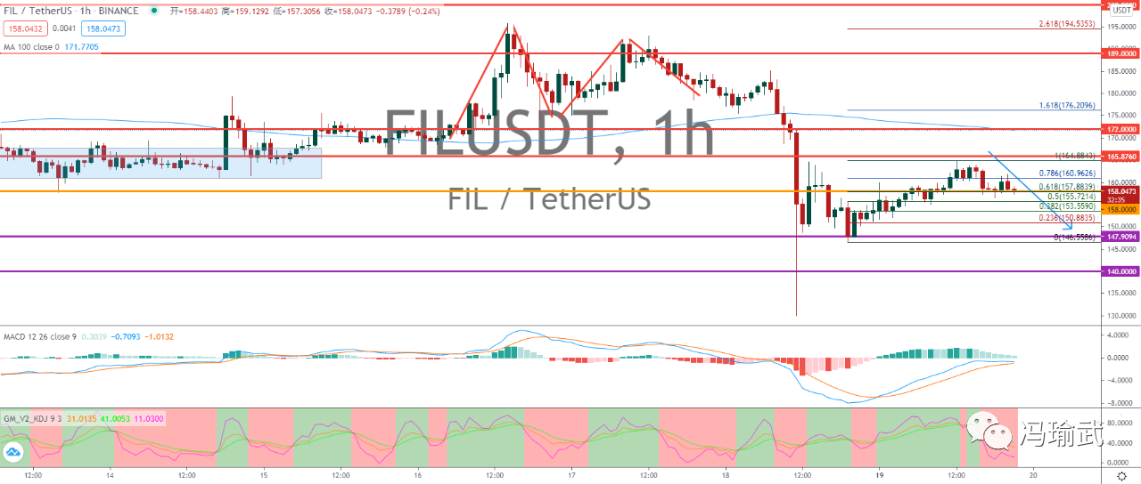 FIL此次的回落还是比较可惜的,在主流币出现大范围下跌的过程中FIL也并未走出独立走势,其价格低点也是打破了前期关键支撑140位置,而未能走出独立走势的FIL在后续交易过程中就不在适合做一个长期现货币种的考虑,目前可考虑分批进行缓慢减仓的处理方式保住现有利润问题。晚间走势变动中,未能走出独立趋势的FIL有望再次出现一定的跟跌走势,后续交易过程中需重点考虑支撑问题的确认。