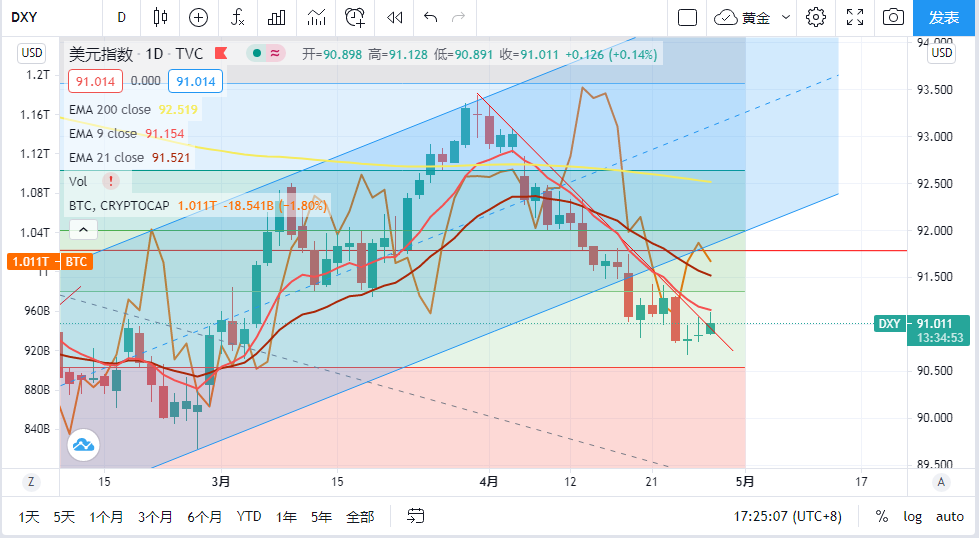 而利率决议上,预计上不会改变美联储政策指引,还是会去保持不变,那对于美指来说,现在处于一个比较关键的十字路口,如果鲍威尔强调现在讨论退出宽松为时过早,这将对美债收益率和美元带来下行压力。而且包括鲍威尔在内的美联储官员的鸽派言论最近都是推动美元走低的主要催化剂,他们一直试图淡化通胀威胁,并为维持长期宽松立场敞开大门,美元的下一步如何走,关键仍在于对美国经济复苏速度的预期