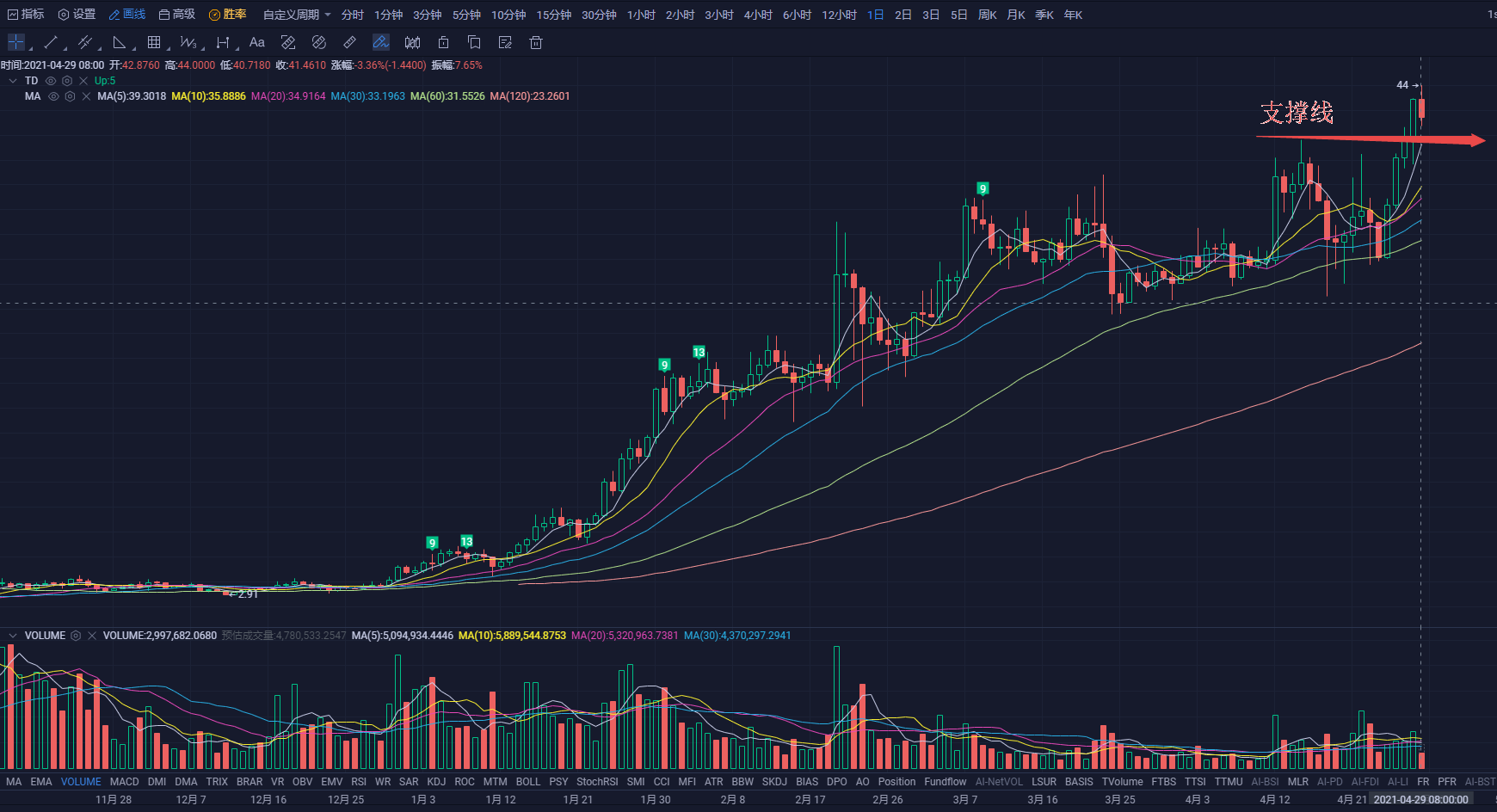 此文章完稿于2021年04月29日233时51分,观点仅对该时分行情负责。如有币友需要补充分析其他币种,那么给我文章下面留言,明天补充分析需要讨论的币种。