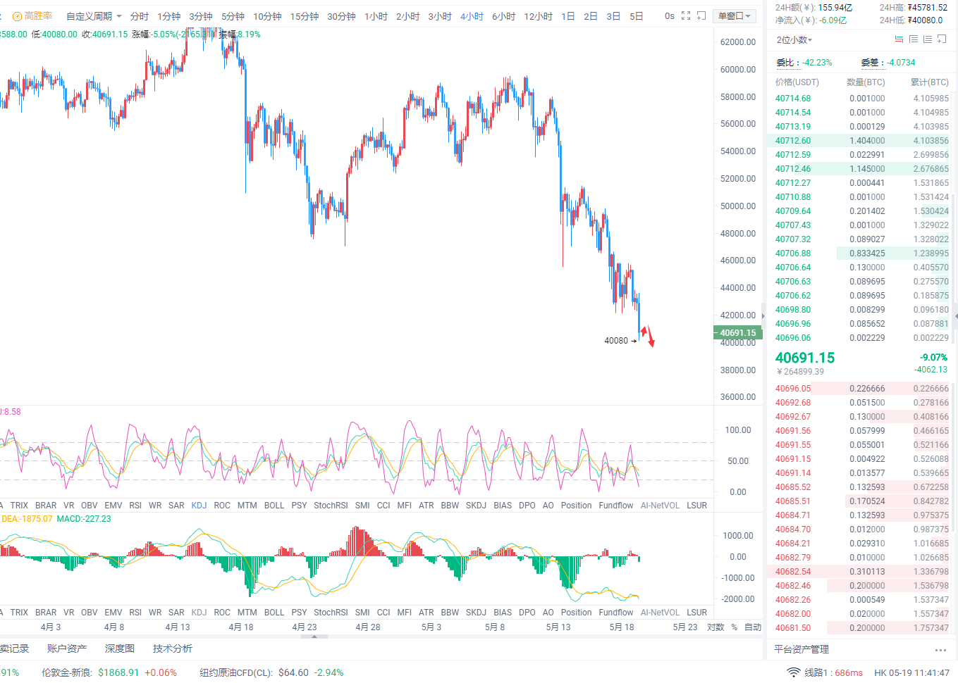 比特币昨日晚间行情反弹至45600附近开始回调,到今日早间跌至低点40080,布林带下轨正在向下开口,早间行情在MA30均线下方运行。MACD双线在零轴下方运行,能量柱逐渐放量,KDJ三线交叉有向下形成死叉的迹象,下方副图指标也是明显下跌趋势,今日操作上以高空为主,低多为辅。
