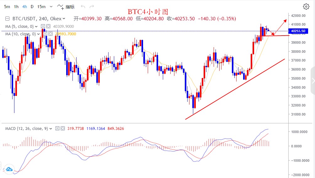 技术面上分析,比特币自从大幅度下滑后一直在低位盘整,6月以来才有了反弹迹象,目前重新回到40000关口也是一个好的信号,至少在重重打压下,币价没有如市场预期一样一路下滑,说明还是有较强劲的支撑力量存在,从日线上看,阴阳交替,整体而言多头开始逐步发力,币价成功站稳布林带中轨上方后回调力度变小,市场朝着向好的方向前行,各项指标也支撑上行,在大的方向上看,比特币仍有上行空间,关注公众号唐思哲获取更多分析,短线上看,4小时线上有回调需求,多头动能开始缩减,在高位盘整一段时间后行情出现回踩属于正常现象,我们等待回踩后开始去布局多单,小时线上空头走势就较为明显了,高位横盘时间太长了,技术面上有回踩需求,下方重点关注39200-39500区间支撑,综合来看,比特币短线上有回踩需求,大方向上继续看涨,操作上先空后多,大家可以去把握下。