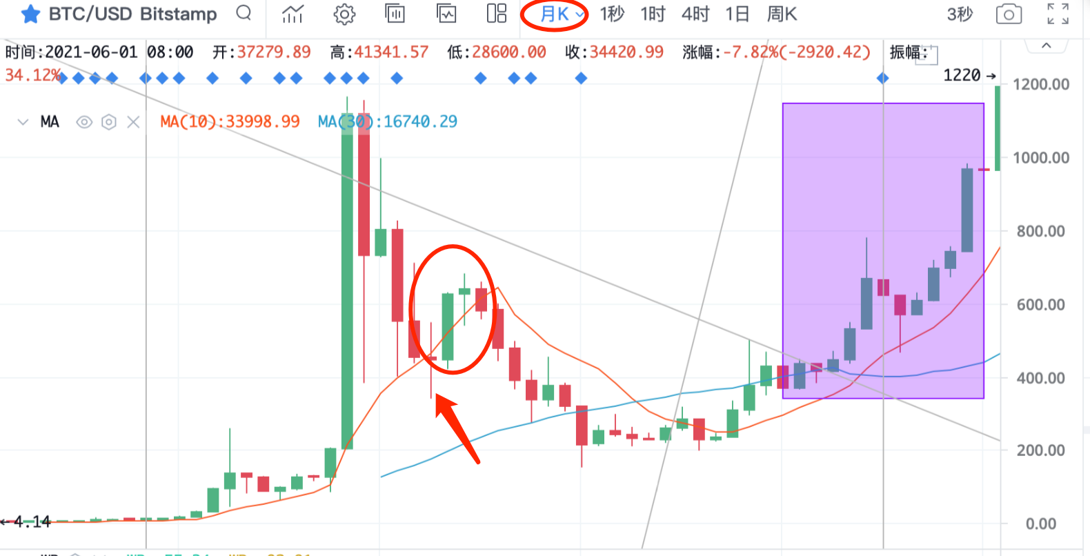 从2013、2017年的走势来看,BTC的月线在MA10附近,或有一波超跌反弹的走势。