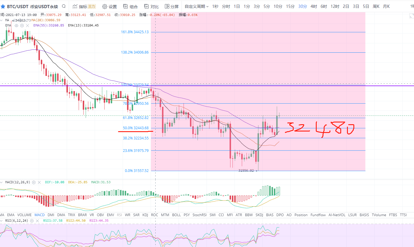 比特币晚间下方支撑32480 给回落继续做多看涨,先看33300多空分分水岭