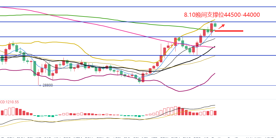 8.10晚间操作建议:晚间关注44500-44000为支撑位布局多单,上方关注46800-47300压力位,空单盘中给出,盘中指导可加扣:35653+21520(博文发稿有延迟,建议跟随实盘参与布局)(博文发稿有延迟,建议跟随实盘参与布局)