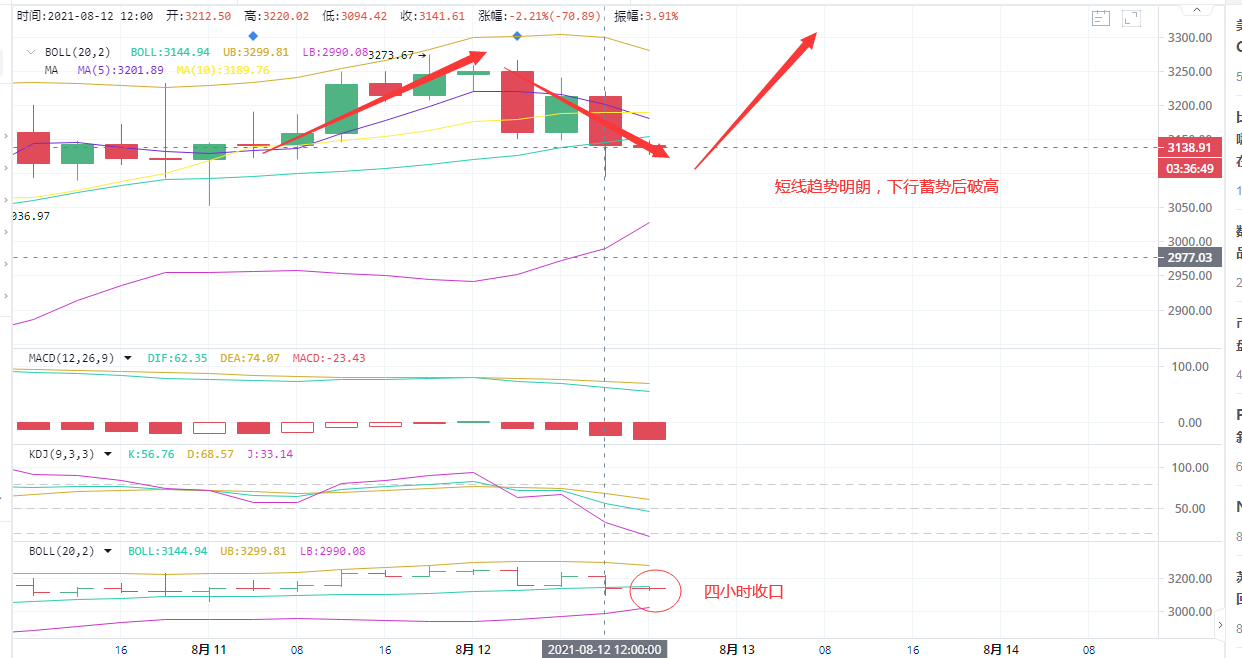 以太坊日内从高点3239一线下行到低点3094一线,短期下行力度还是比较大的,但是并未下破3000一线,上次回落我们也是明确给出了下方短期支撑就在3000一线,目前已经慢慢收复至3130附近,短期走势大概率是震荡上行。