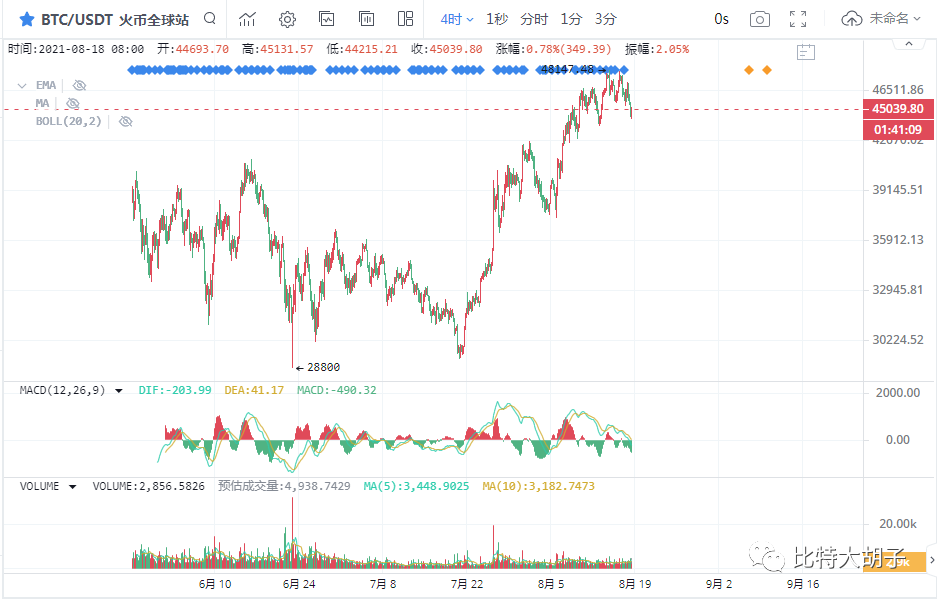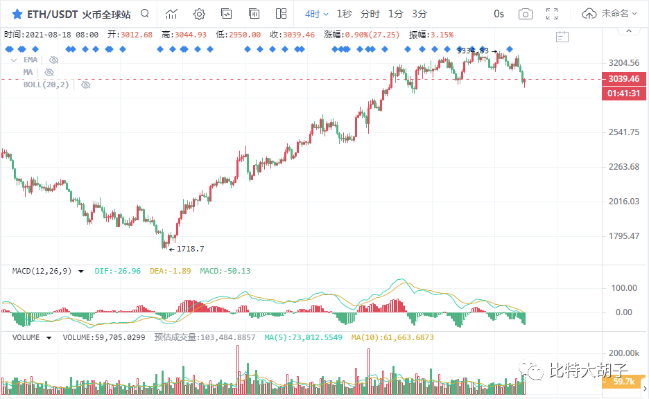 以太现在相比比特币走势要快,现在已经提前了一步就是比较头疼,3000位置就相当于比特币的44000一线,现在这里的底背的出现是有点不好的对待,以太可以先暂缓放一边不去进行介入,还是先以比特币为主,