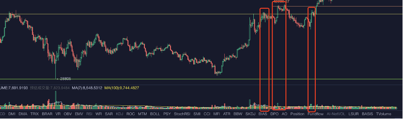 上述两个矩形震荡区间的突破一般都不是一次可以完成的,会有反复,比如突破以后再打回来(参考一下之前30000-41300之间的矩形突破情况)。以下是4h级别突破41000左右矩形上沿时的情况,可以看到第一次突破成交量没有有效放大,是假突破,很快就跌回来了。第二次放量突破了,但因为该区域震荡了2个月,阻力较大,也被打了回来,第三次放量后成功突破。
