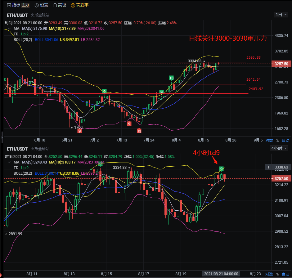 法海老韭菜:8.21号以太坊和比特币行情分析及操作思路分享