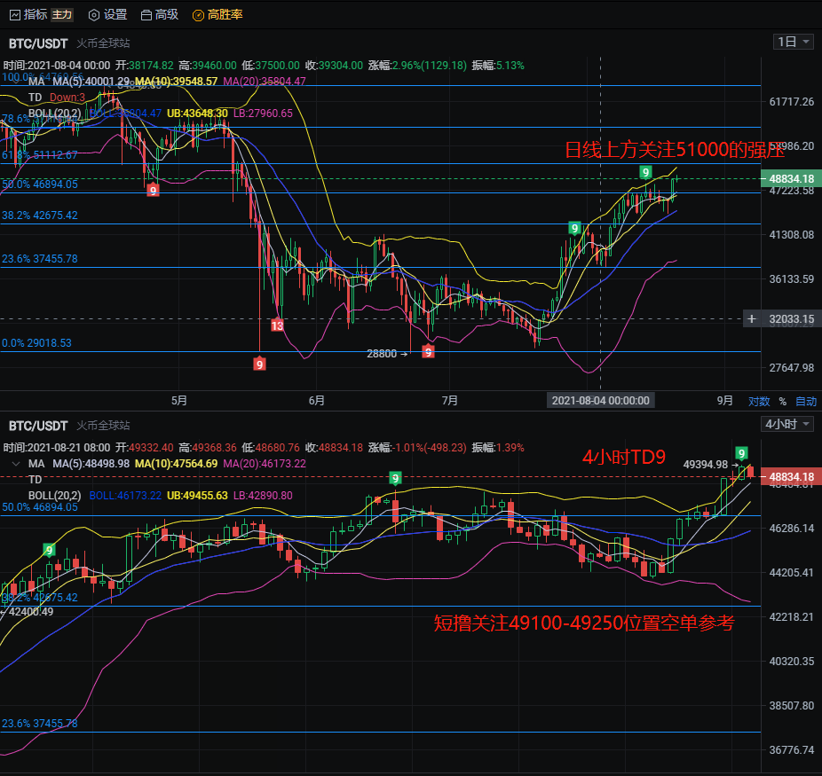 2. 上方关注51000左右这个位置的压力位。(理由1,斐波那契618位置,以及之前的多空分水岭位置)