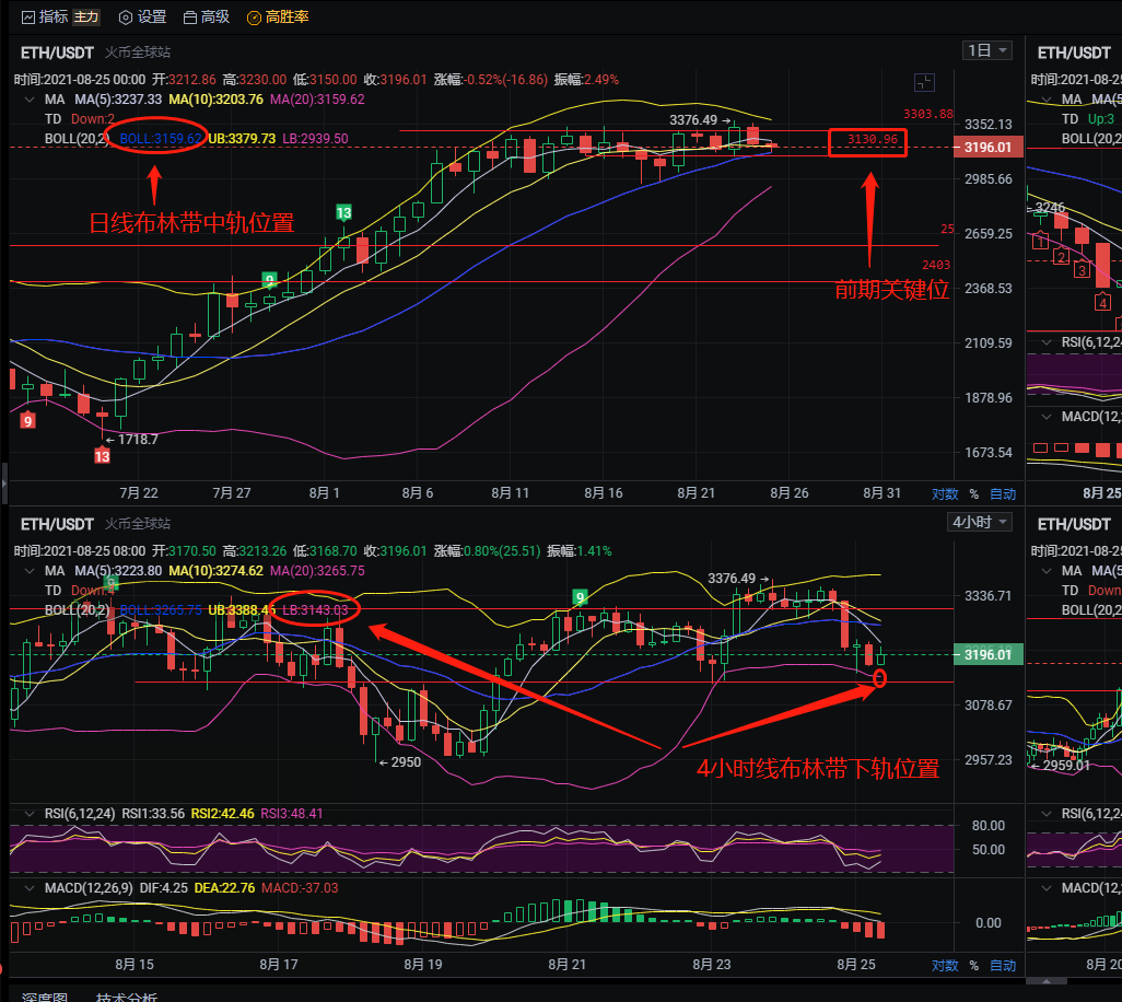 法海老韭菜:8.25以太坊和大饼行情分析及操作思路分享