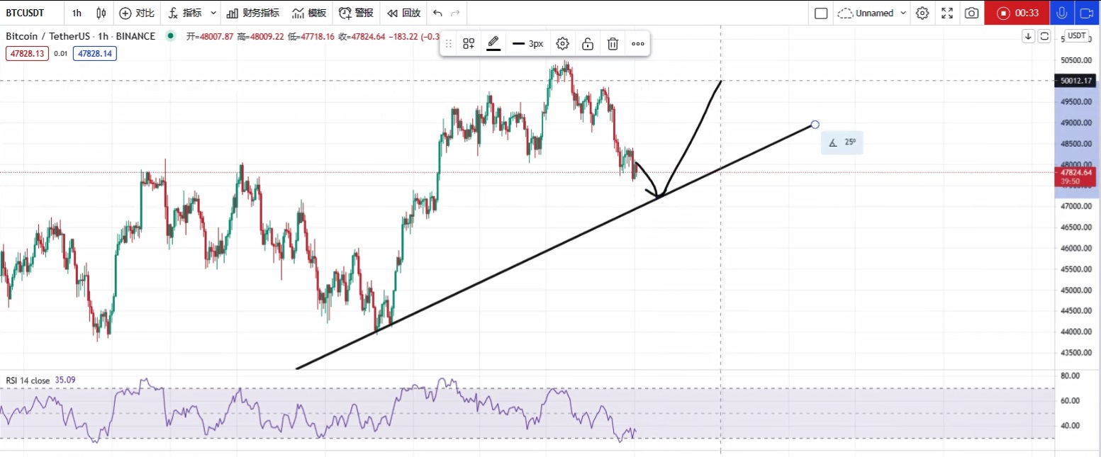 比特币5万不站稳,可能去到47500,但今天文章我会分享比特币目前以形态的角度来看,牛市的最后一道防线。