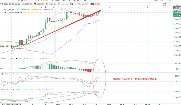 小时伴随连阳上涨,单阴下挫回踩,短暂且收复快,带有下影线回踩的局部修正,同时带动均线指标拐头,趋势看多。经历快速的下探回踩。短线收复后技术面进一步加强多头量能。同时消息面仍需关注持续性。继续利好将继续加速上涨势头。技术面在4000构造双顶不成功,延续慢涨格调不改,日内操作建议围绕低点3930一线附近回踩进多,震荡蓄势后仍有新高可能。