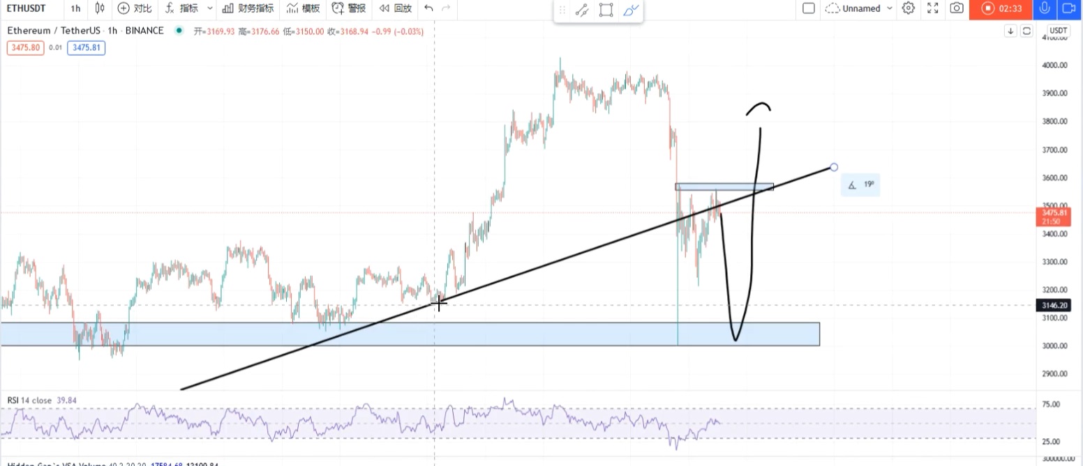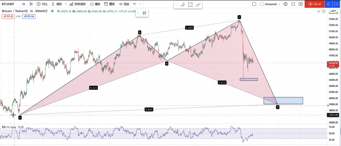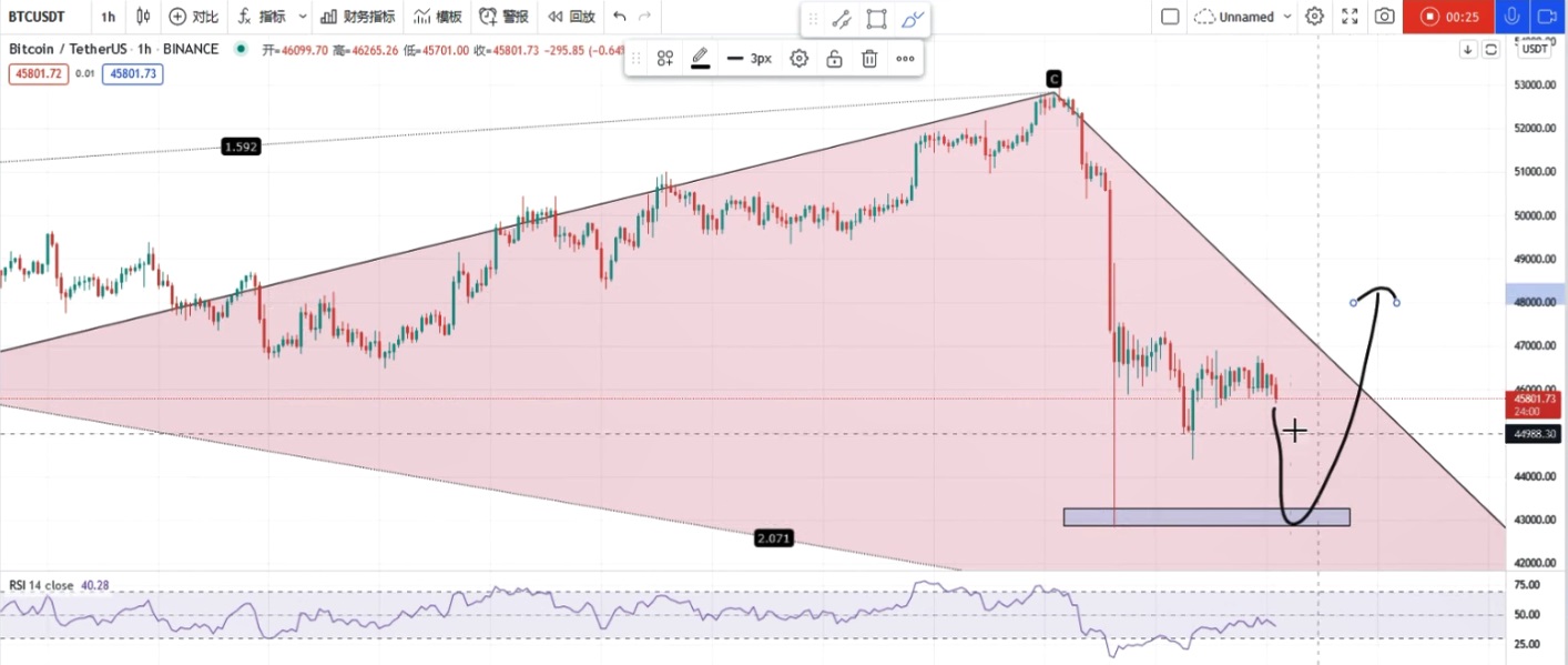 如果7号的那个底被打破,那市场可能会去完成我画的这个大鲨鱼。 鲨鱼完成位很不错,也是之前的阻力变支撑区域。