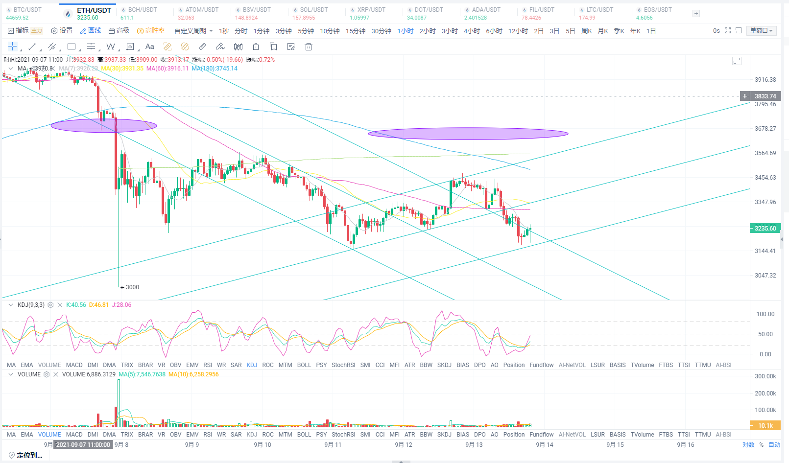 以太坊的通道还是没有踏破的,虽然与今日内走出了几波的回调下探,但是还是处在它的一个整体的交错通道内的, 通道压力目前为3324,第二压力为3478可以作为两个箱体作为参考,底部支撑关注3150不破则问题不大,操作上可考虑3200附近进场多单,上方3400附近进场空单,止损控制在50美金 ,止盈可根据自己的仓位去进行分批离场,风控一定要做好 谨防踏空追高