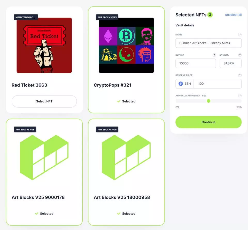 Fractional.art 是最新出现在以太坊主网上的 NFT 碎片化协议,它于 2021 年 7 月推出,图为碎片化界面