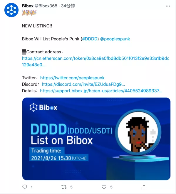 顺理成章的一步。比如已经上了交易所的 People's Punk,公布了其代币DDDD的经济模型,总供应量为10亿枚,70%将分配给贡献者,20%作为流动性激励,10%作为储备金,用于未来的投资。CoinGecko 数据显示,People's Punk (DDDD)上线 Uniswap 16小时交易量超 3300万 美元,达到3395万美元。
