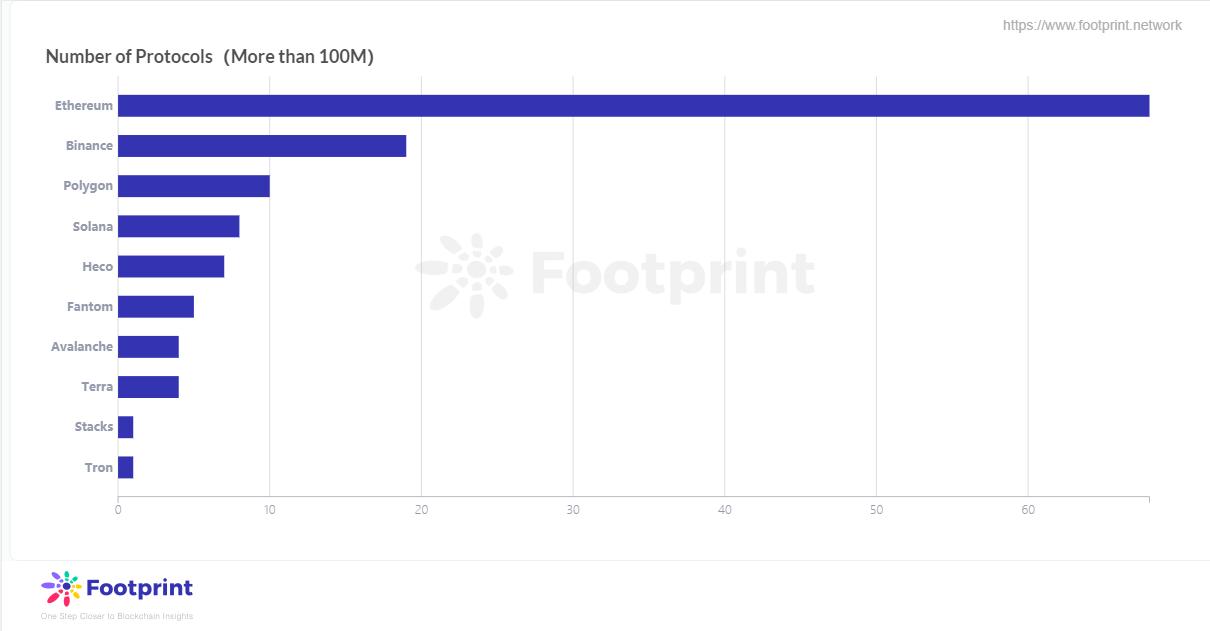 各公链1亿以上协议个数(2021年9月),数据来源:Footprint Analytics