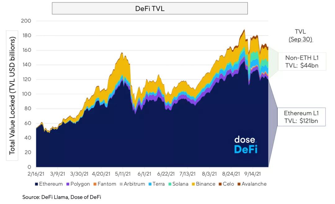 >>1. 以太坊主网能否保持其在 DeFi TVL 市场份额的领先地位?