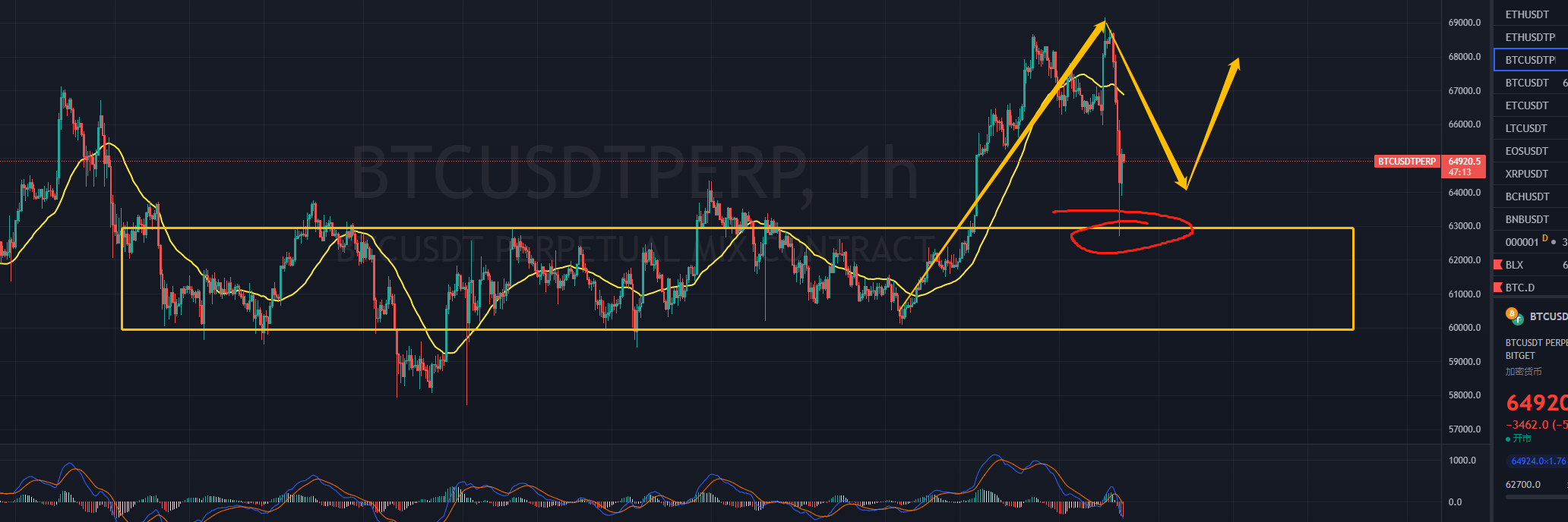 大饼: 61700 61000 做多止损 60000