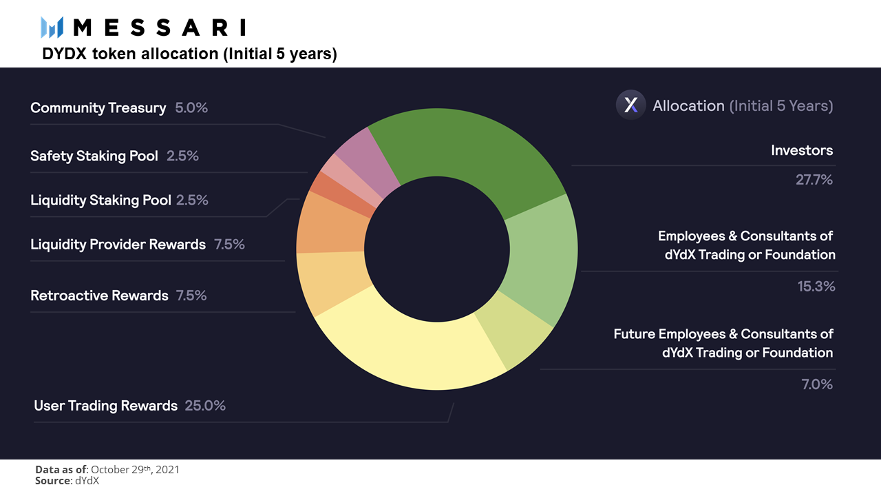 DYDX 代币由 dYdX 基金会推出,而不是 dYdX 交易所,后者是一家营利性公司。该公司正在努力将交易所的所有方面都去中心化,并将协议的完全控制权转移给基金会。