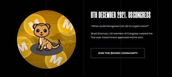 在猫鼬币的官网上,赫然写着一句话:诞生于2021年12月8日美国国会。