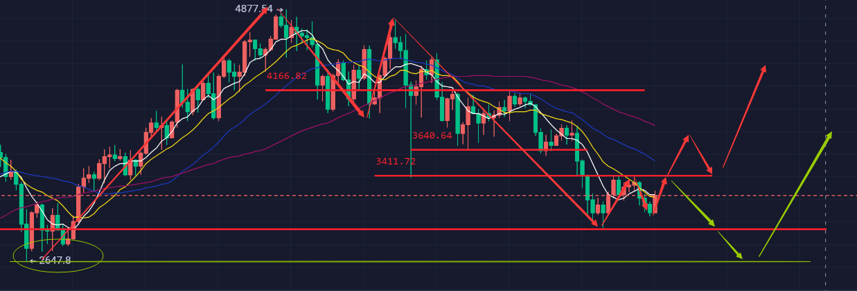 大家好,我是周胜男,昨日给出的建议单均未触及,日内行情主要趋势呈上涨,小时图行情在MA30日均线得到支撑,日内行情回撤均未跌破MA30日均线,行情在晚间9点开始上涨,收三连阳,KDJ指标在80轴持续运行,当前KDJ在80轴死叉向下,MACD指标红色空心转实体动能柱缩量,4小时图行情站上MA7日均线向上运行,行情在触及BOLL上轨略微回落,MACD指标红色空心动能柱放量增量,日线方面行情再次突破MA7日和MA14日均线压制,KDJ指标在50轴V转,有死叉转金叉迹象,综合来看,以太能否站稳MA7日和MA14日均线时关键,行情若站不稳,则还是会继续向下试探新低,若站稳,行情有进一般试探上方BOLL中轨一线压力和上方强压位3420一线压力的可能