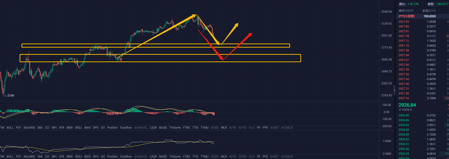 姨太2H的结构,姨太的走势跟我的预期没什么太大的区别,依然个看还是看2850-2650这个区间能够获得支撑,只要核心不跌破2650的话还是有三买的机会,然后在走一笔2H的反弹来结束这笔高级别的反弹。