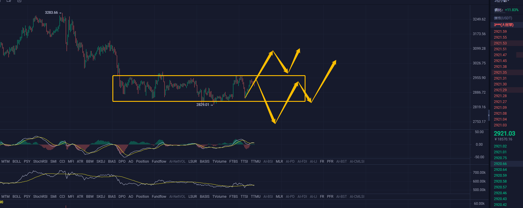 行情变化太快,很多不能及时提醒,不能够在变化的情况下吧行情说清楚,所以可以关注我的公众号。