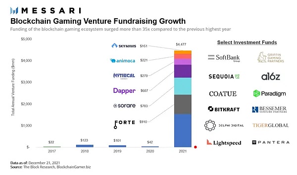 上图:自 2017 年以来,区块链游戏风险融资的增长情况。