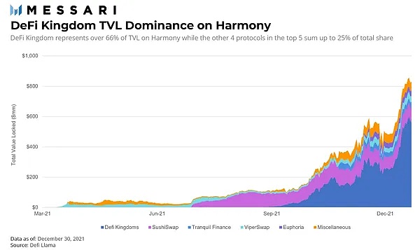 上图:DeFi Kingdom 协议在 Harmony 链上的 TVL (总锁仓价值) 增长情况。