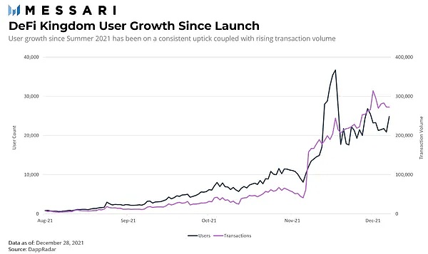 上图:DeFi Kingdoms 自发布以来的用户增长情况。