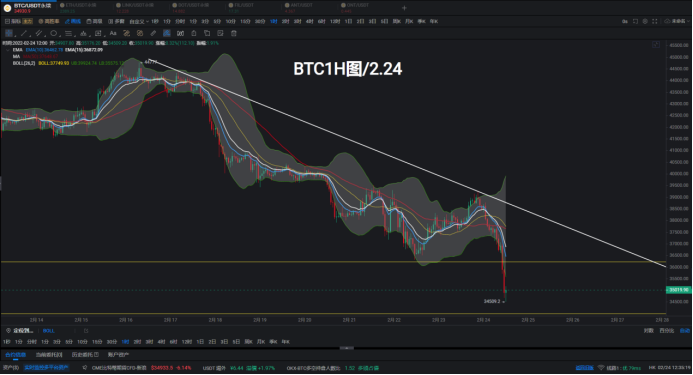 各位小伙伴们大家好;“战争”打响,市场多空战紧跟其后,市场方向目前随着地缘事件而进入极度不稳定阶段;截止下午1点BTC日内行情跌幅已经达到约3000点;操作难度加大建议观望;看空不追空;多一定别碰!具体操作思路与细节晚间6-8-10点直播间不见不散!