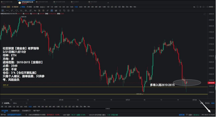 2月21日ETH多单策略盈收120点【速战术】