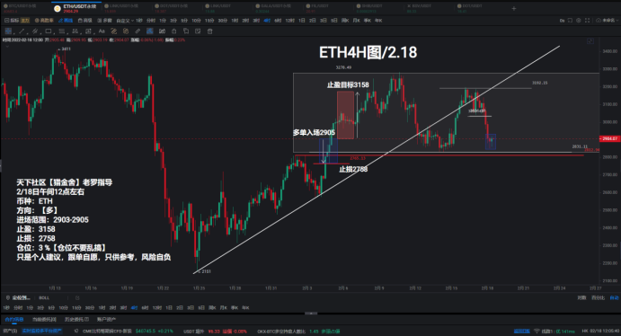 2月18日ETH多单策略亏损140点出局