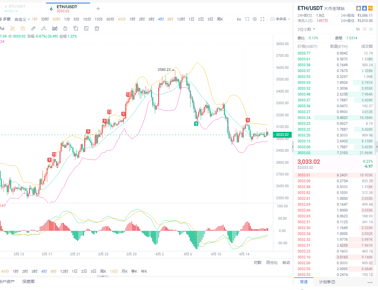 以太坊短期上方压制关注3080-3130区域,下方支撑关注3000-2980区域。