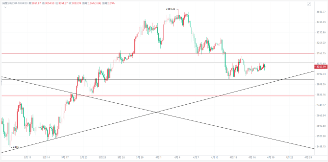 回踩3030附近做多,止损30点,目标看3070~3080附近