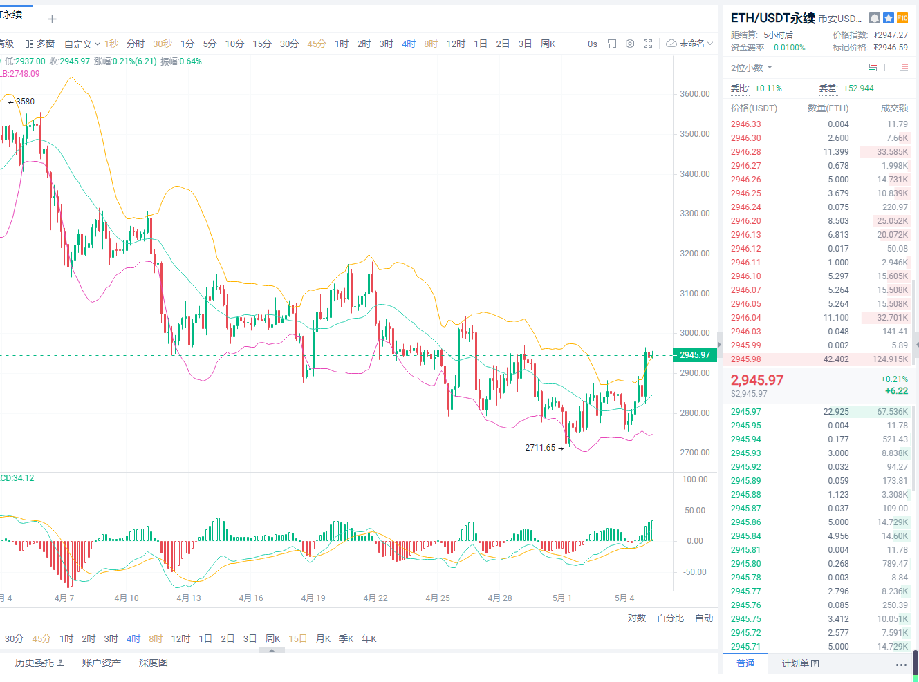 以太坊建议:2920-2900附近多,目标2950-3000