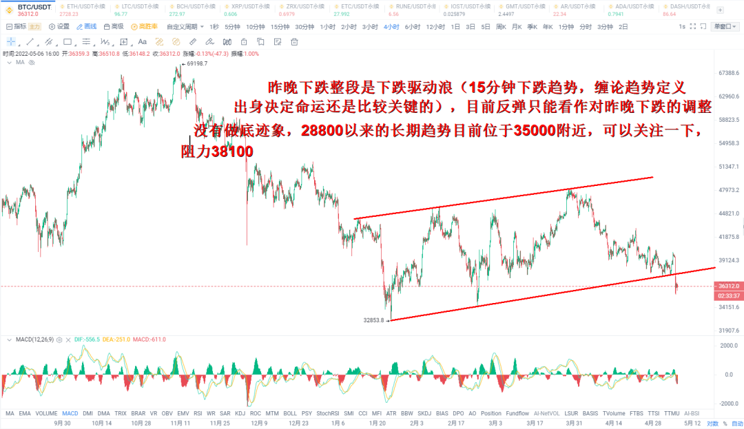 我在等待35000附近是否会出现放量情况,或者能否反弹到37500-38000这种神仙行情,多几分谨慎是没错的。