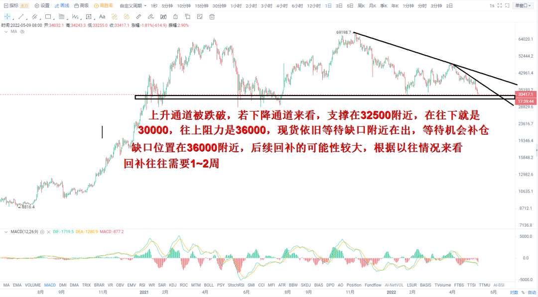 合约是需要止损的,现货我觉得没必要,35000、33000、30000,分别加仓一成,等反弹。