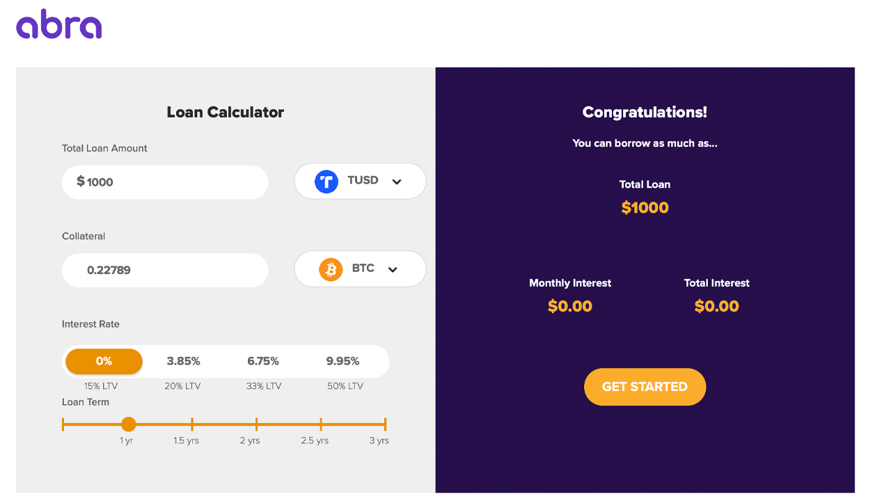 On April 28, 2022, Abra announced it has partnered with the company Propy and homebuyers can secure a home loan using crypto as collateral via the Abra Borrow platform. The Abra lending application has various interest rates, depending on how much crypto collateral is added, from 0 to 9.95%.