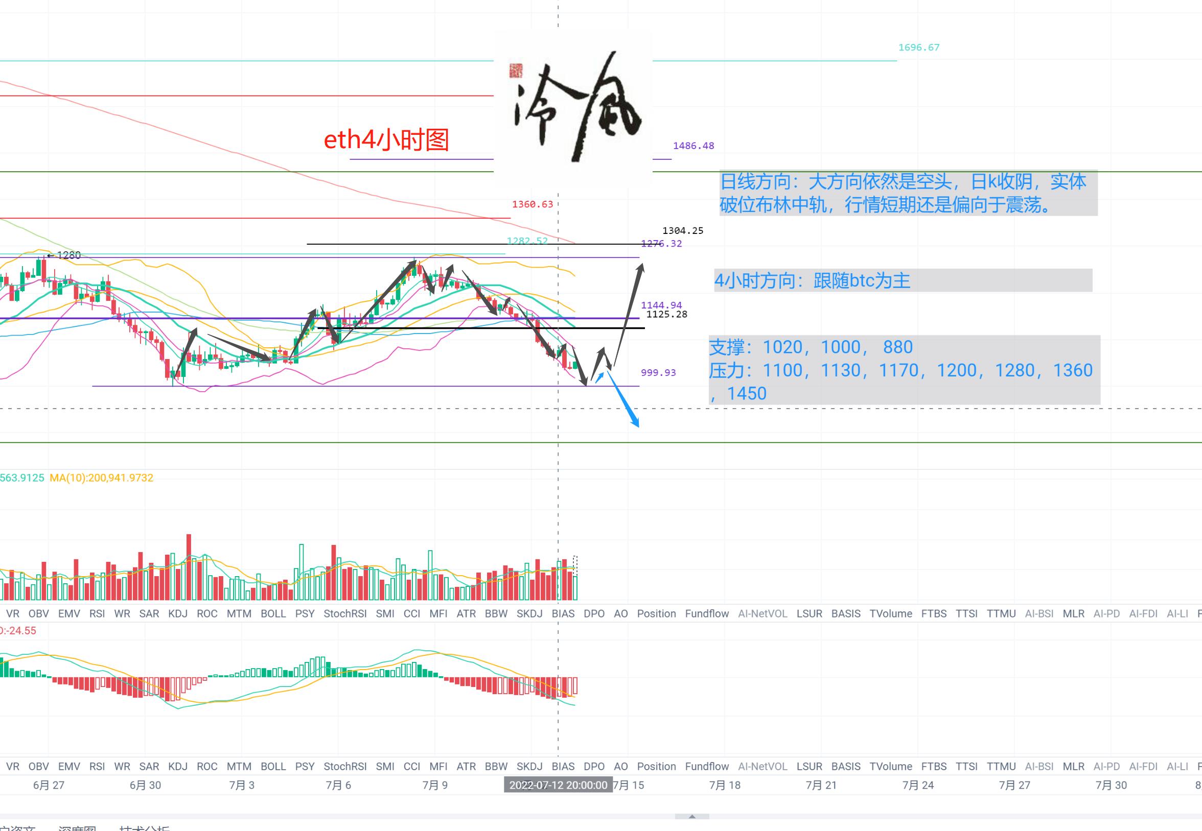 ETH短线支撑1000-1020美元,短线压力1100-1120美元。跟随大饼波动,在下跌过程中,太太只有受罪的份,这就是嫁鸡随鸡,嫁狗随狗,现在只有被动跟着跌了。操作也是跟随比特币走势,关注压力做空即可。目前在反弹,可以先看1060-1080这个压力区间。下方注意以太考验关键支撑1000美元。主流币跟随大饼波动,按照大饼节奏操作。