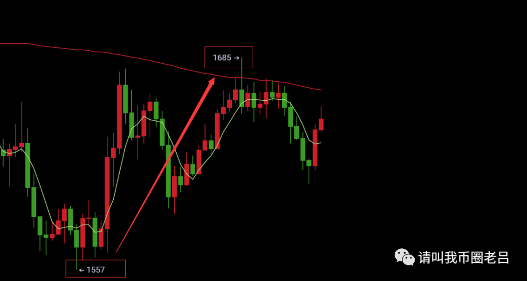 大家好,我是币圈老吕。接上篇,我们还是老规矩,先来做一下简单的行情回顾,我们上一篇给大家分析的很清楚,以太坊还是要去做多,因为形态上不具备大跌的可能,所以我们于8月2号中午11点46分给出了以太坊1519-1556美元区间去做多,价格于8月2号下午五点抵达1557美元(价格参考OK)完美触发多单策略,目前最高上涨至1684美元,多单再次拿下130美金收货,其实这个单子没做上的也大概只有一个原因,内心恐惧和胆量不足,因为很多人看着前面大跌了,总想着要去做空,其实不然呢?老吕其实在上一篇说的算比较坚决了。第一,在形态上并没有出现大阴模式不具备开空条件,另外一方面价格没有跌穿1519美元强支撑位,下跌空间不会太大。另外此单止损也不大,1556美元进场,止损位防守1519,也就是看着价格跌穿1519美元离场即可,难道这些详细的信息没有去说。所以,也不要在老吕文章底部留言你单子没做进去之类的,如果说我给的点位相差太大你没进,那是老吕的原因,但是这个单子让你1556去开多单,价格到了1557你都不进,那是谁的问题?有的人是免费的策略看多了,就对某些东西习以为常,记住,老吕不欠你的。那为什么我们内部的学员都跟上了这个多单,而你没有,多找找自己的原因。老吕自认为在币圈的技术方面还是有一些造诣。前段时间还有位不知姓名的币友在我这里留言:错的时候文章不说,对的时候使劲说。我拉黑他有两个理由:第一,我不知道他是谁,他吃着免费的策略,还想着把老吕的锅砸了。第二,策略总有错的时候,错的时候我不说大家也都能看到,难不成还专门给你开个道歉会?策略都是老吕一字字码出来的,那么请问你付出了什么?所以,摆正自己的位置,我可真不像其他老师那样惯着你这臭毛病。你尊重,我加倍,反之,也是一样。