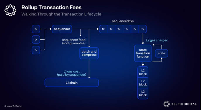 用户在应用状态转换并执行其交易时被收取 L2 gas。L1 gas 是在之后处理批量交易时支付的。L1 和 L2 gas 价格根据各自的拥堵情况而不同。因此,用户在两种 gas 中产生费用,而且有时间错配。定序器在知道批量交易的全部内容、压缩程度或发布时 L1 的基本费用是多少之前,就承诺进行交易并收取 L2 费用。