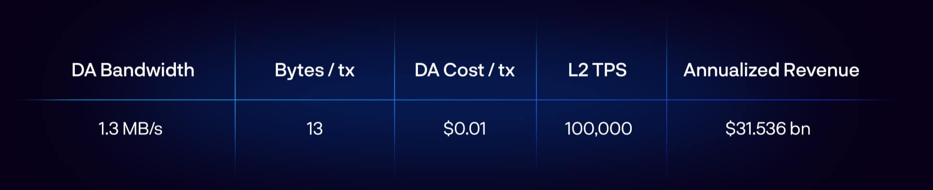 我有信心,至少在几年内,与以太坊强大的结算层相比,DA 费用收入将可以忽略不计。