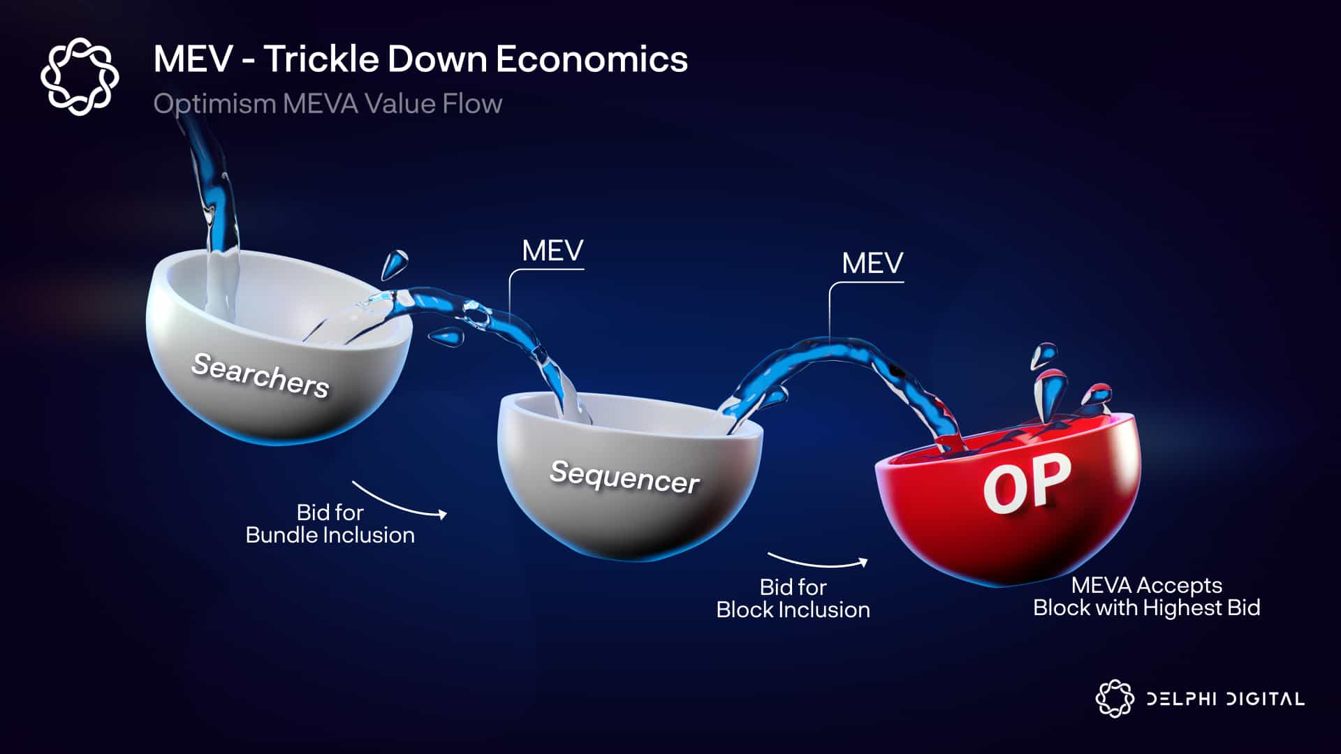 至于 Rollup,看起来则有点不同,但类似的概念适用。下面这个简化的例子是 Optimism 为定序权运行了一个 MEV 拍卖(MEVA):