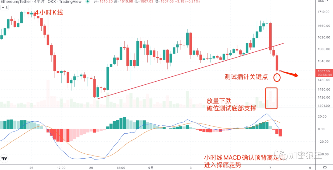 昨天老狼聊过ETC面临8月形成的阻力线压制,ETC双插针回落,确认阻力抛压,ETC沿30日线插针回落,下方33.1美元是箱体关键点,一旦放量跌破33.1美元,就会确认M头,空头会加大抛售力度,接下来ETC下探测试33.1美元。